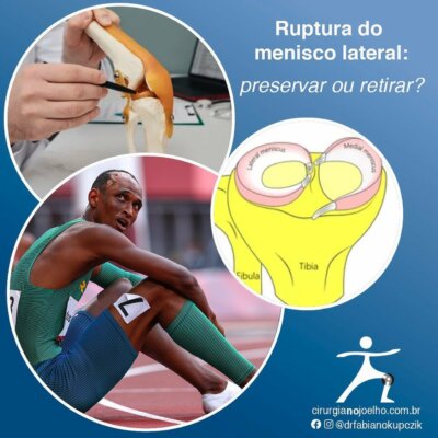 Já a preservação do menisco é feita por meio da sutura meniscal, que é uma técnica meticulosa e necessita treinamento e experiência do cirurgião. Contudo, a recuperação é mais lenta e demorada.